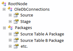 The RootNode object is quite large and would require another article to define its contents. I would suggest taking a look at the Varigence online documentation for a complete list of objects within the RootNode (https://www.varigence.com/Documentation/Api/Type/AstRootNode). The most commonly used objects within the RootNode are collections like: Connections, FileFormats, Packages, Tables and Schemas.