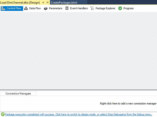 Figure 4. Successful Execution of an Empty SSIS Package