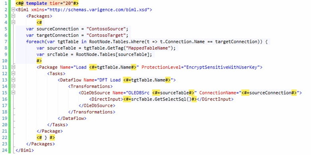 <#@ template tier="20"#> <Biml xmlns="http://schemas.varigence.com/biml.xsd"> </Biml>