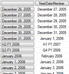 Illustration 14: Example Result Dataset Returned via the Combination of .CurrentMember and .NextMember (Partial View)