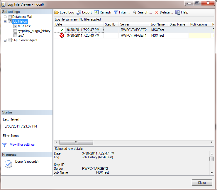 This step covered the Multi Server Administration feature of SQL Server Agent, MSX/TSX. You can use an MSX/TSX environment to centralize job administration and management, as well as centralized event reporting. Using this capability reduces the number of servers to which you must connect to monitor the state of your systems.
