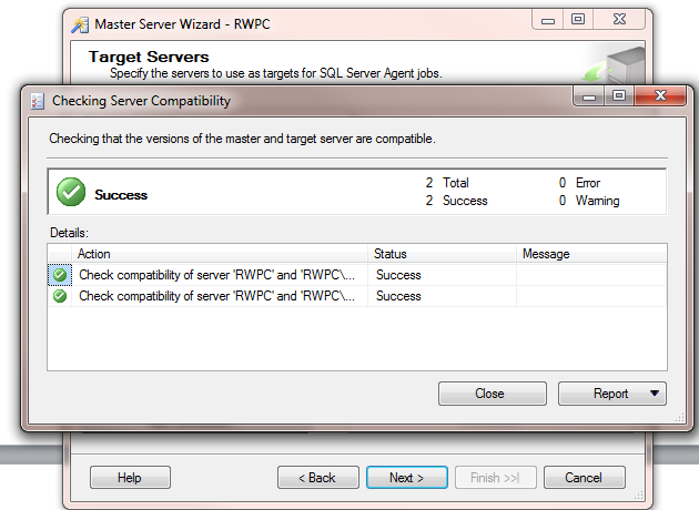 Figure 5: Master Server Wizard – Specify Target Servers Validated