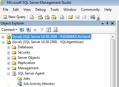 Figure 2: The Object Explorer Tree as a SQLAgentUserRole member