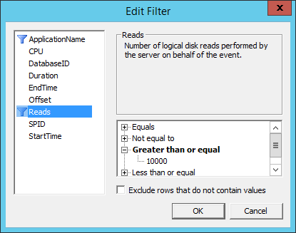 EXEC sp_trace_setfilter @TraceID, 16, 0, 4, @bigintfilter