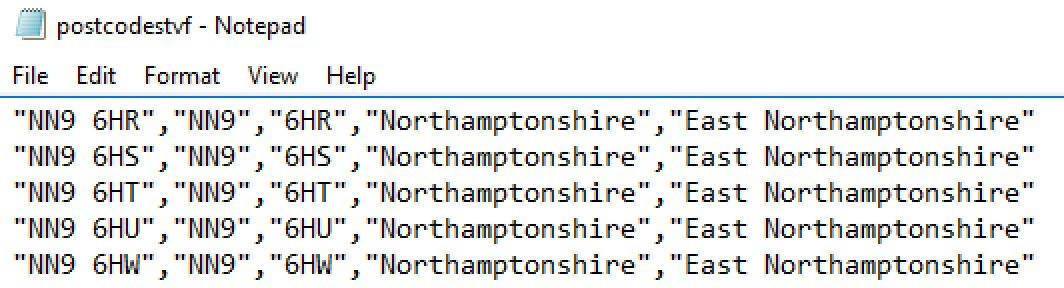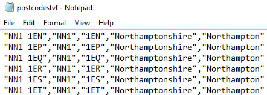 Have a scroll through the file and you’ll find it’s packed with postcode goodness.