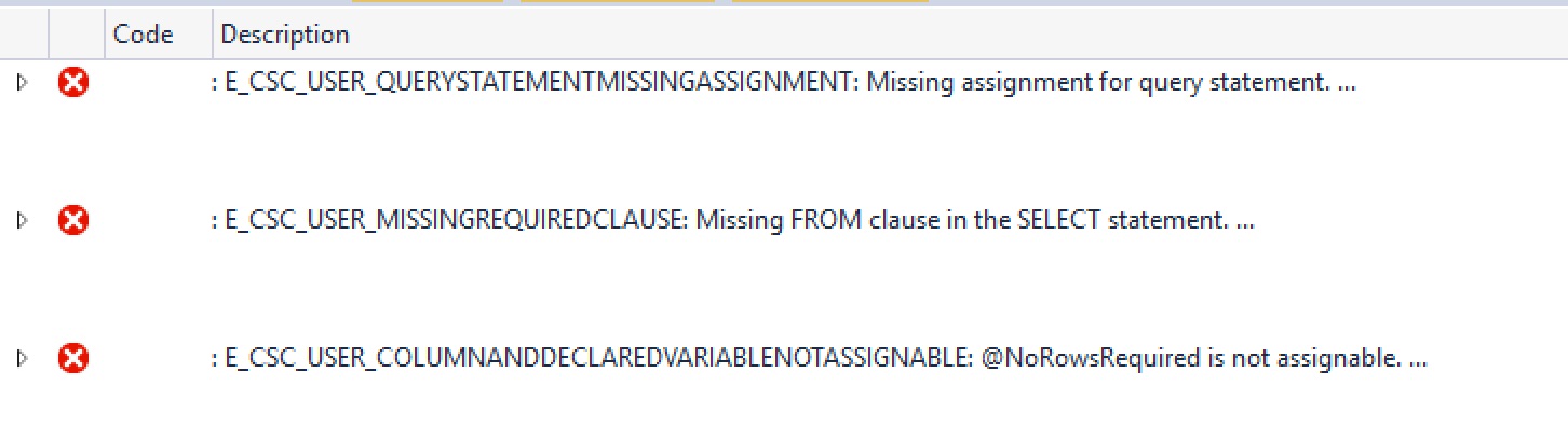 We couldn’t write the code like this, because U-SQL complains very loudly: