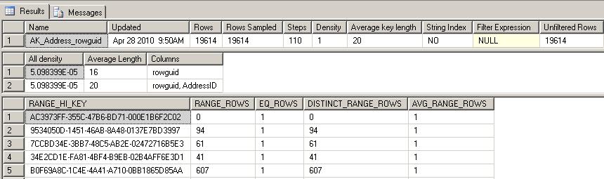 DBCC SHOW_STATISTICS ("Person.Address", AK_Address_rowguid);