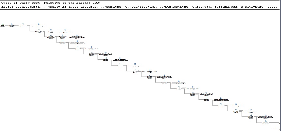 The screeshot below is displaying part of the execution plan which Timed out. I had to Zoom Out quite a bit to capture a good portion of the plan on screen. Obviously it's unreadable but I'm just displaying it to demostrate the Timed Out scenario.