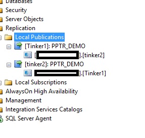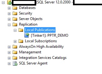 Now we have a publication with no other nodes. Time to move on to adding nodes. In Management Studio, we can see the publication: