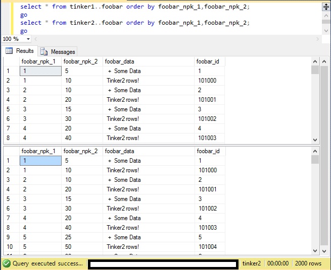 In our example, we set the first identity in Tinker2 at 100,000, so that the table inserts in database Tinker do not clash with the inserts in the database Tinker2.