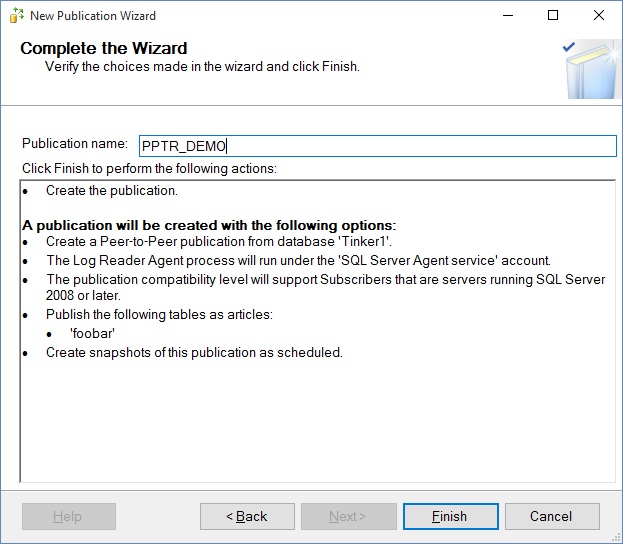 And we arrive at the final step of this wizard. Name the PPTR publication and choose to Finish.