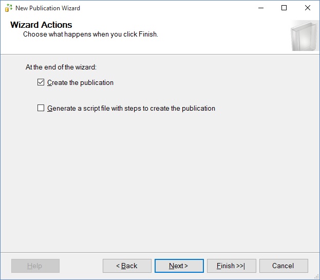 You then choose to create the publication and or generate a script. I prefer to generate a script, but for this example, we'll go straight to creation: