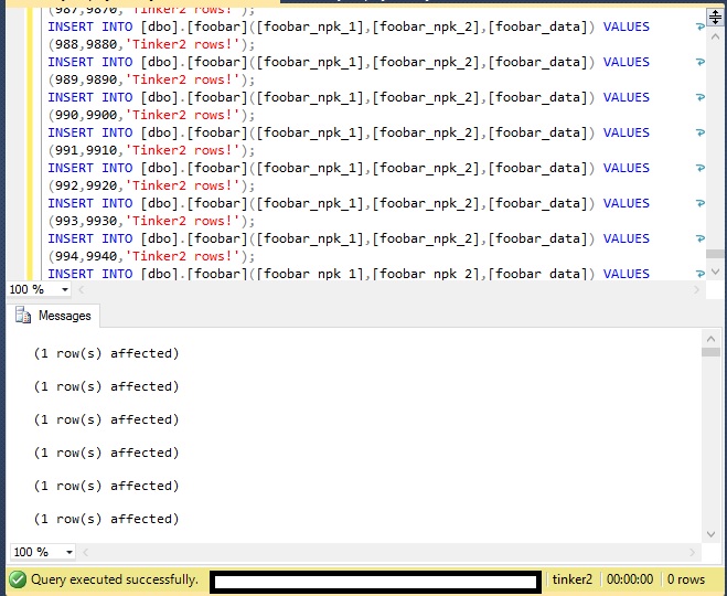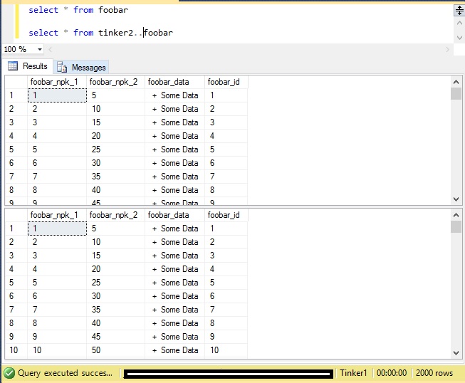 First, let's add some data to foober in Tinker1. I inserted 1000 rows of data into Tinker1.