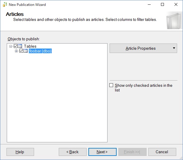 Choose the tables to publish. Remember that the table must already exist in every node, with identical schema and data.