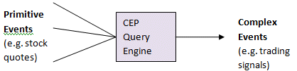 Streaming data can be seen as a series of events. The events can be organized in a hierarchy with lower-level primitive events directly emanating from the data sources and higher-level complex events describing inferred information from the lower-level events. For example the primitive events could be stock quotes. Patterns in the stock quotes could be represented as complex events and higher order "patterns of patterns" could be represented as complex events even further up in the hierarchy. Even the absence of primitive events, such as no stock quotes in a while for a particular symbol, could trigger the generation of a complex event.