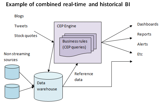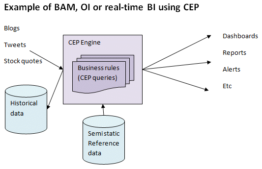 An example of a BAM, OI or real-time BI solution (or whatever you call it...) using CEP is pictured below.