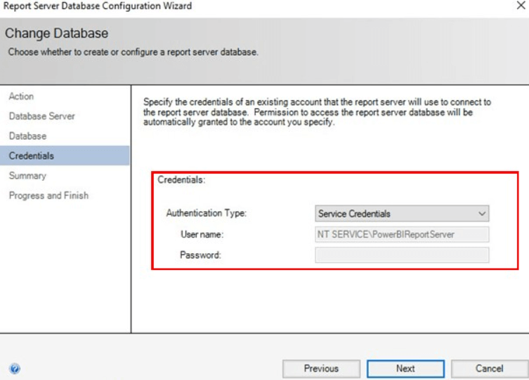 Enter the credentials to connect the reporting catalogue. We are using the default Service Account in our example.