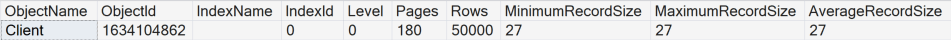 DBCC SHOWCONTIG('dbo.Client') WITH TABLERESULTS