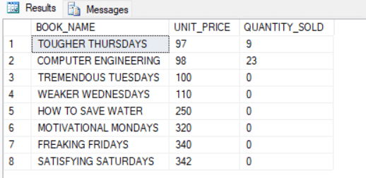 SELECT BOOK_NAME, UNIT_PRICE, QUANTITY_SOLD