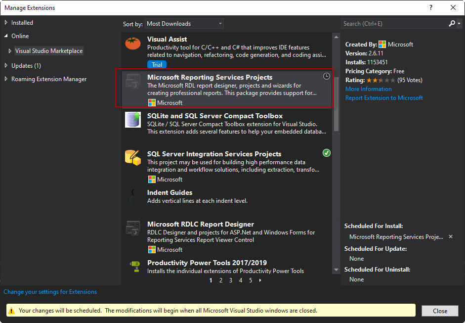 - Also, we will install the SSRS projects in VS if they were not installed before.