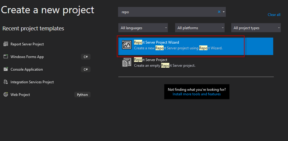 Once you install the extension, go to a new project and select the Report Server Project Wizard. This option will help you to generate the report.