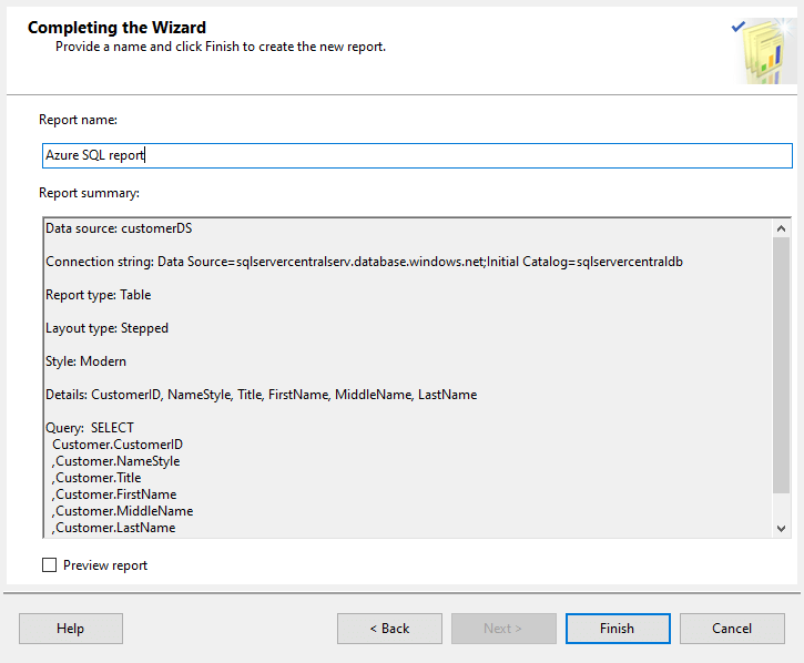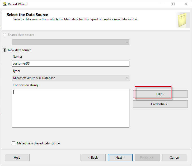 Create a connection in the SSRS Report from Azure SQLThe wizard may ask you to write the user name and Password again.