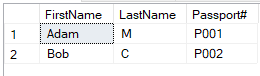-- Join Person table over PANCard to get all the data together SELECT pr.FirstName, pr.LastName, pc.Number as 'Passport#' FROM Person as pr JOIN PANCard as pc ON (pr.Id = pc.PersonId)