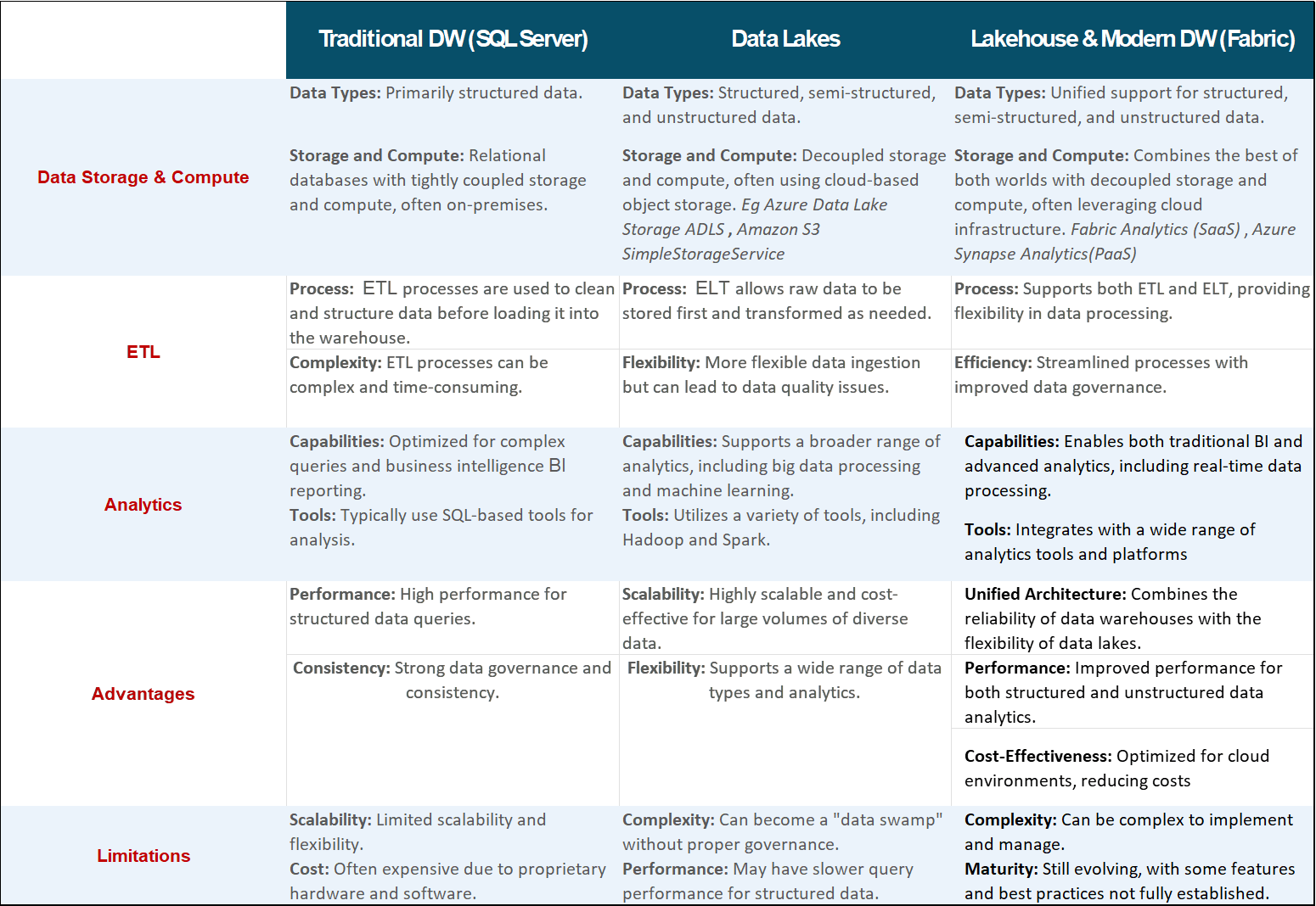 As WWI transitions from SQL Server to Microsoft Fabric, it is crucial to understand the implications of this architectural shift. While both platforms offer robust data warehousing capabilities and ACID compliance, their fundamental architectures differ, affecting performance, scalability, and analytics workflows.