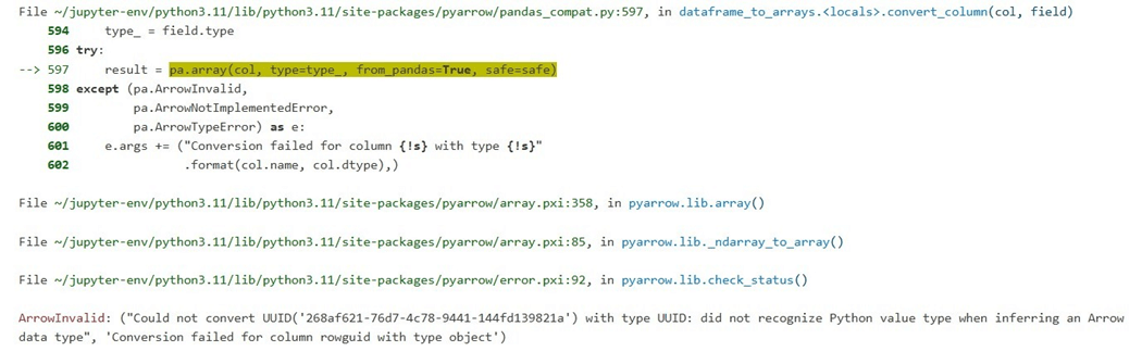 The delta lake library is smart enough to know that the UUID data type is supported by Python, but the Arrow format does not have a corresponding data type.