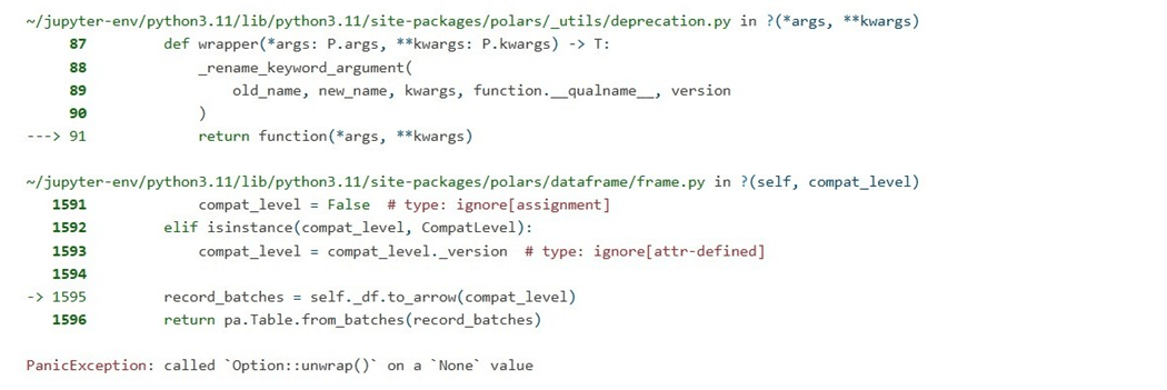The polars library returns an ambiguous error about unwrapping a missing value.