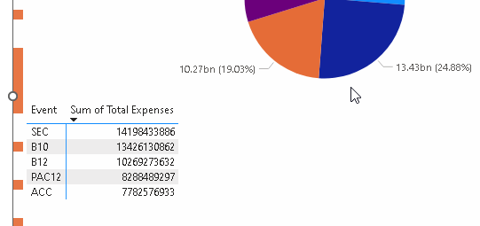 Under that option, we can not only sort our axis or legend but also we can display our data as a table.