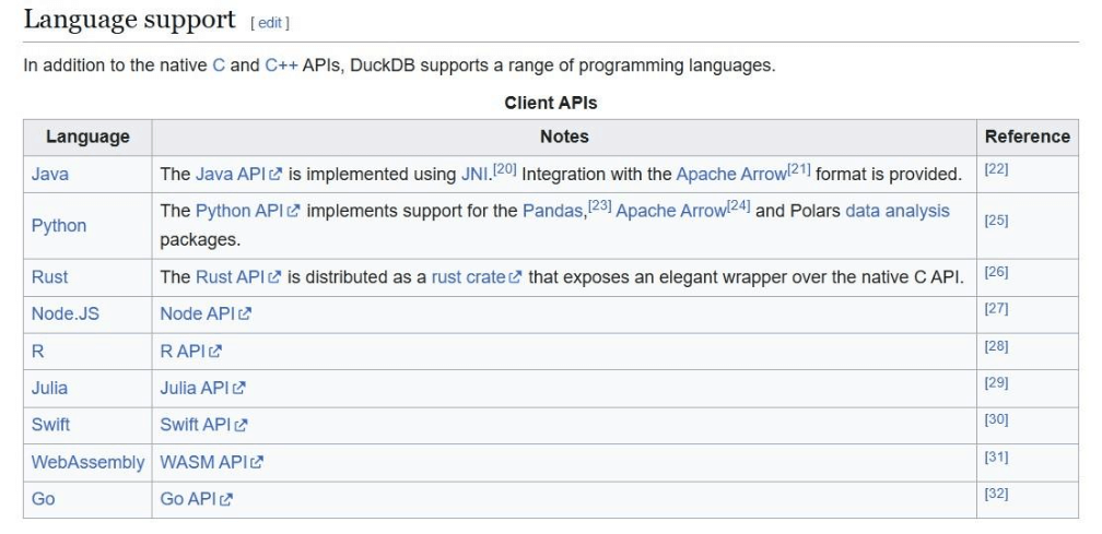 We are going to be writing code in either SQL or Python Languages. Because this open-source library is compact and requires no dependencies, it can be used with other languages to create analytic applications for various hardware devices. The screen shot below shows the languages supported by the library.