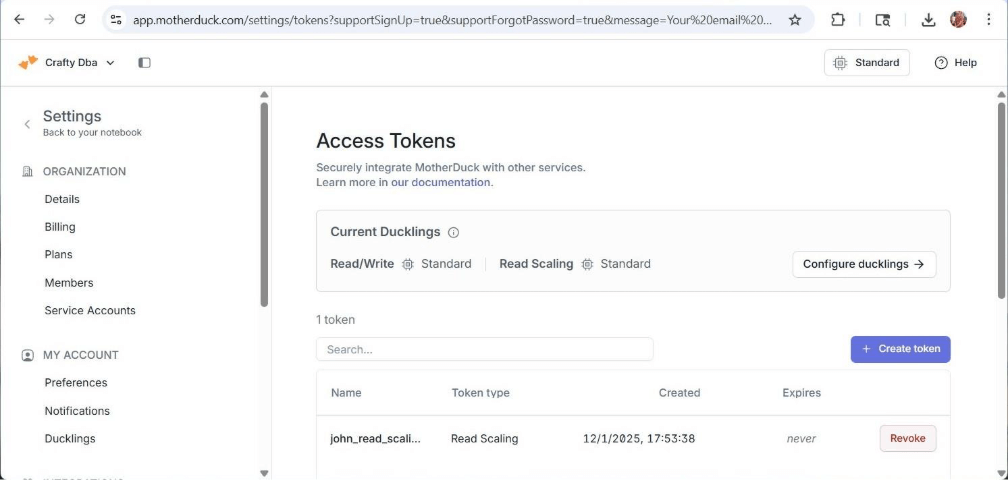 # Mother Duck API Token