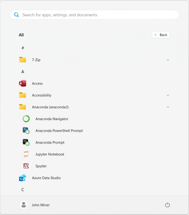 I really enjoy installing Anaconda since the Python engine, the Spyder editor and the Jupyter Notebook environment are deployed using one install package. The image shows the shortcuts for my Anaconda installation.
