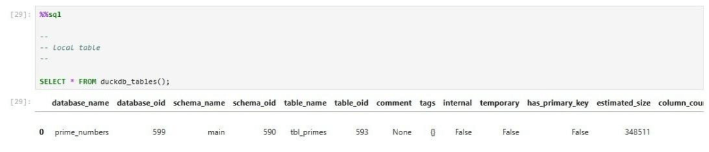 # # load the sql extension # %load_ext sql conn = duckdb.connect(database='prime_numbers.duckdb') %sql conn --alias duckdb