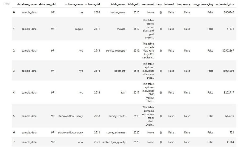 While writing code is fun, as a data analysis we want to just run queries against tables. This can be accomplished with the SQL extension for Jupyter notebooks. This allows the magic command to be bound to a database which can be local (file) or remote (cloud). I did not cover the full syntax of the DuckDB language. However, system functions do exist to examine metadata entries of the catalog. Jupyter notebooks are a great solution for Data Scientist and Data Analysis who need access to the data.