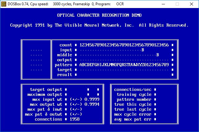 Attached as a resource to this article is an MS DOS application I wrote a few years ago in Microsoft QuickBASIC and assembly language that displays a functioning artificial neural network (ANN) and illustrates the underlying mathematics.