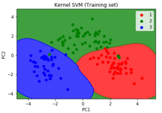 # Fitting Kernel SVM to the Training set from sklearn.svm import SVC classifier = SVC(kernel = 'rbf', random_state = 0) classifier.fit(X_train, y_train)