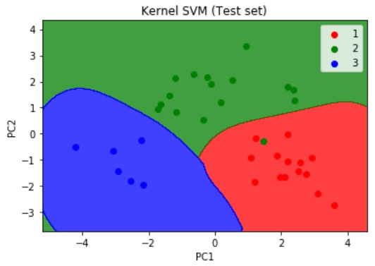 We can then use the following metric depicted in the code snippet below to explain the evaluation of this classifier machine learning model 'Kernel - SVM'.