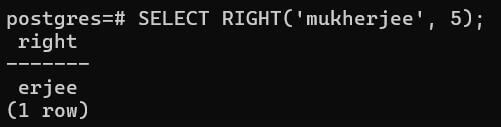 The function returns a substring starting from the rightmost character to the length specified or NULL if any argument is NULL.