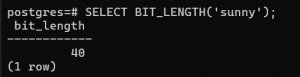 The string 'sunny' has 5 characters in it and 1 char is equal to 8 bits which equates to 40 bits for 5 characters.