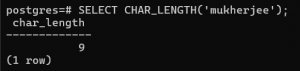 Works exactly as the previous function BIT_LENGTH() but with a difference that is this function returns the length of the string str in terms of characters in a string and not bits. Also known as CHARACTER_LENGTH().