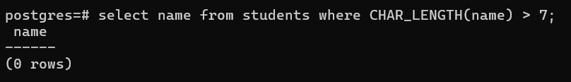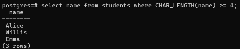 FROM students;Let us consider another scenario where there is a need to check whether a character is a digit, uppercase letter, lowercase letter, etc.