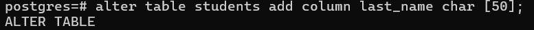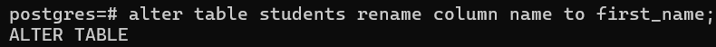 alter table students rename column name to first_name; alter table students add column last_name char [50];