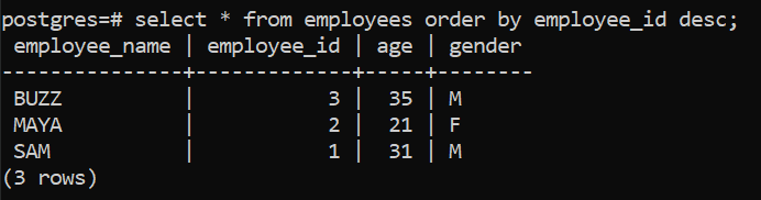 select * from employees order by employee_id desc;