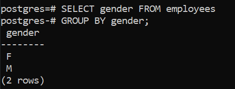 SELECT gender FROM employees GROUP BY gender;