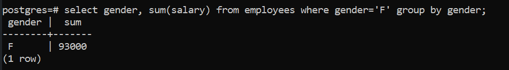 From here, if we want to get the sum total of salary for all female employees,