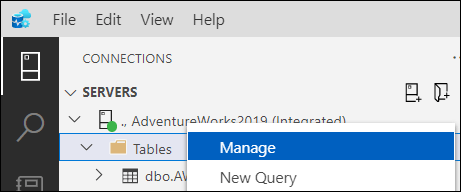Secondly, in ADS, go to Connections and select your SQL Server connection to right-click the connection and select Manage.