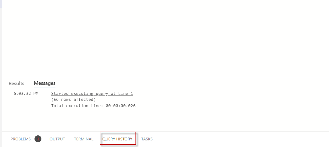 Query history menuIn the lower pane, go to the Query history tab to check the queries executed.