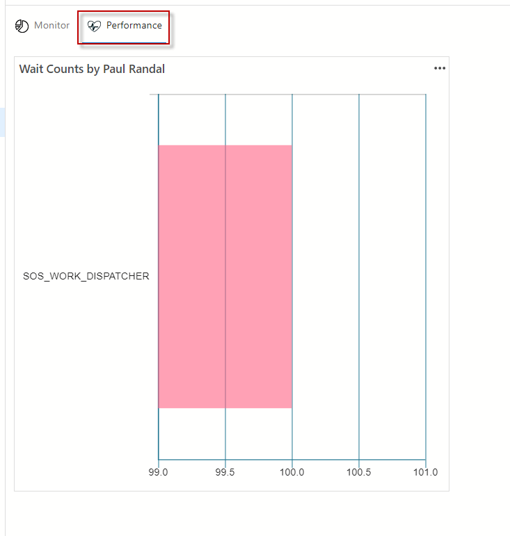 Server ReportsIf we click the Performance tab, we will see the Wait Counts. Wait counts are related to waits of workers. The SOS_WORK_DISPATCHER occurs when an SQLOS thread is waiting for something to do. The wait starts if the thread is idle and ends when the thread has something to do.